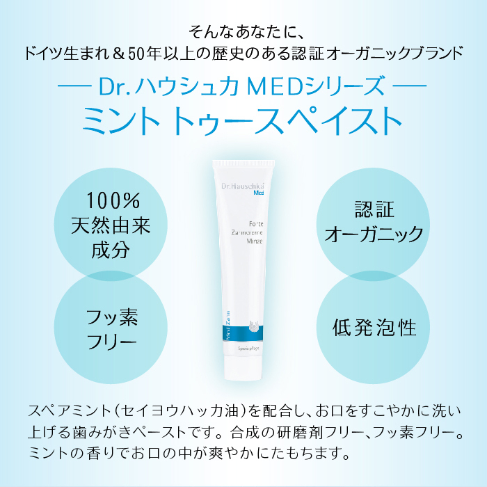 天然由来香味成分としてセイヨウハッカ油を配合し、歯と歯茎を健やかに洗い上げる歯磨きペーストです。フッ素フリー処方。ミントの香りでお口の中が爽やかに保てます。