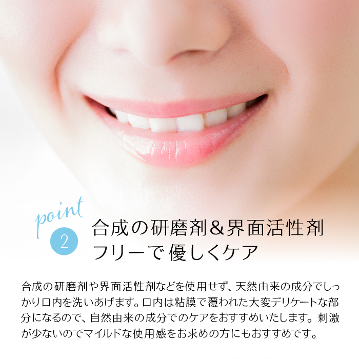 海水、海塩、ケイソウ土やピートモスエキスなどの天然由来成分で歯と歯茎を健やかに洗い上げる歯磨きペーストです。フッ素フリー処方。歯茎が敏感に傾きがちな方にもおすすめの穏やかな使い心地。天然由来香味成分としてグレープフルーツやレモンの果皮油を配合し、後味は爽やか。